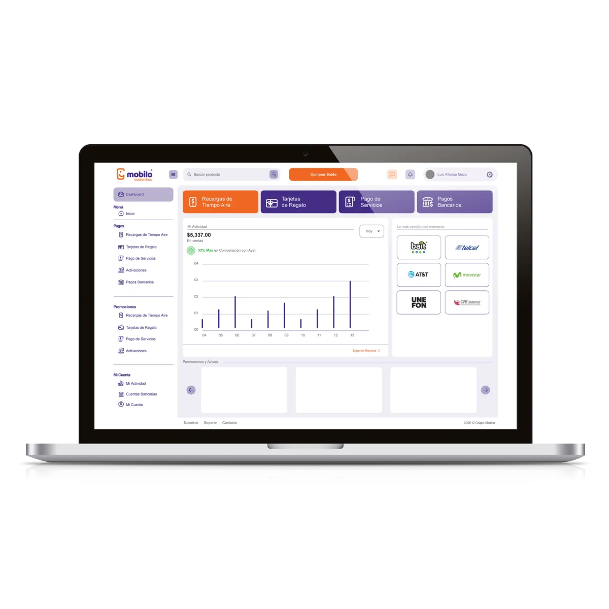 Mobilo Multiservicios es una plataforma digital que te permite vender recargas electrónicas, pago de servicios, internet móvil y tarjetas de regalo desde un solo lugar.